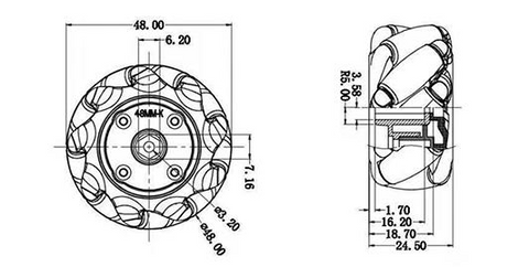 The Plastic Mecanum Wheel is a type of robot wheel typically made of plastic material, and its special design enables the robot to move in any direction on a horizontal plane, including translation and rotation. It is used for the movement of robots and vehicles. The Mecanum wheel has a special wheel rim with inclined small rollers, allowing the wheel to slide diagonally and laterally, rather than just moving in a straight line. The advantages of the Plastic Mecanum Wheel include being lightweight, low noise, easy to produce and use. They are commonly used in education, entertainment, and small-scale robot applications, such as robot soccer, unmanned vehicles, and automated navigation vehicles. However, compared to Metal Mecanum Wheels, the load-bearing capacity of Plastic Mecanum Wheels is lower, and may not be suitable for robot applications that require large loads or high-speed movement.